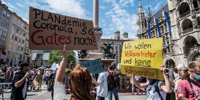 شارك آلاف الألمان في مظاهرات بأنحاء البلاد اليوم للاحتجاج على القيود التي تفرضها الحكومة لاحتواء وباء فيروس كورونا.