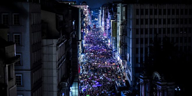 وذكرت وكالة فرانس برس أن المظاهرة سارت وسط الضفة الأوروبية لاسطنبول ورفعت المشاركات خلالها لافتات كتب عليها “نحن أقوياء معا” وهتفن شعارات معادية للنظام التركي.