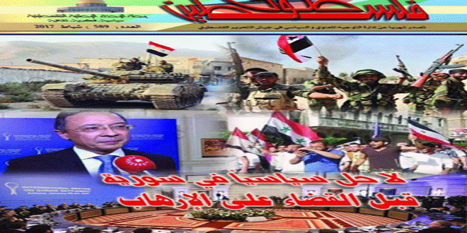 وفي الافتتاحية كتب رئيس التحرير أحمد صوان مقالا بعنوان “لا حل سياسياً في سورية قبل القضاء على الإرهاب” بينما كتب الباحث محمد مباركة موضوع الغلاف لذي جاء بعنوان “ماذا بعد اجتماع أستانا… الأولوية لإنهاء وجود الإرهاب وإيجاد حل سياسي للأزمة في سورية” أما الكاتب والباحث رفيق القوصي فكتب مقالاً بعنوان “أطماع نتنياهو التوسعية بأذربيجان وكازاخستان” وكتب عارف الآغا تحت عنوان “الاستيطان وتبني استراتيجية جديدة لمواجهته” بينما كتب كمال نادر مقالة بعنوان “العالم العربي وسط التحولات الدولية الكبرى” وكتب حسن م يوسف مقالا بعنوان “التحكم بحفرة النار”.