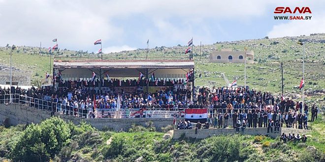وأكد المشاركون أن هذه المناسبة تستنهض فينا الهمم لمواصلة الطريق الذي خطه الآباء والأجداد في مقارعة الاستعمار والعدوان، مجددين رفضهم الاحتلال الإسرائيلي للجولان السوري المحتل وممارساته العدوانية والاستيطانية الهادفة لتهويد الجولان، وطمس الهوية العربية السورية.