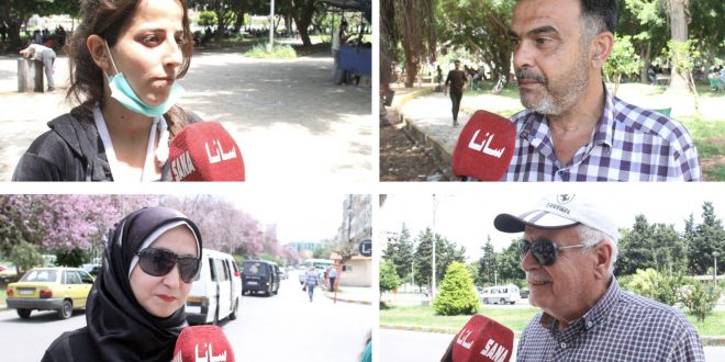 رياض سلامة وهو بائع بسطة في حديقة الباسل أكد أن محبته للوطن تقتضي منه المشاركة في الانتخابات الرئاسية فيما أكدت زينب خضور أنها ستشارك وستعطي صوتها لمن تراه مناسباً وقادراً على النهوض بالوطن والعودة بسورية كما كانت.