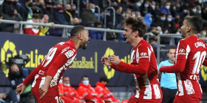 حقق فريق أتلتيكو مدريد فوزاً عريضاً على مضيفه فريق قادش بنتيجة أربعة أهداف مقابل هدف واحد في اللقاء الذي جمعهما مساء اليوم ضمن منافسات الجولة الخامسة عشر من الدوري الإسباني لكرة القدم.