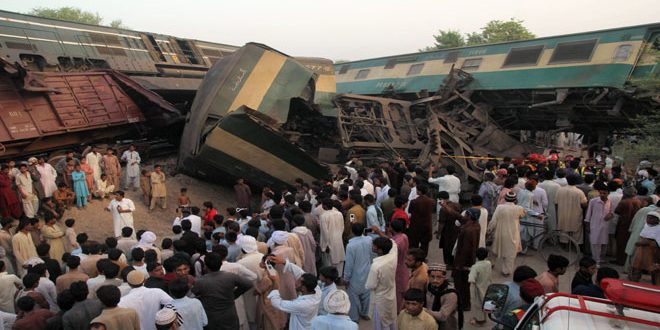 ووقع الحادث حين اصطدم قطار ركاب كان متجهاً إلى كراتشي بقطار شحن كان متوقفا بعدما دهس شخصاً أثناء محاولته اجتياز السكة.