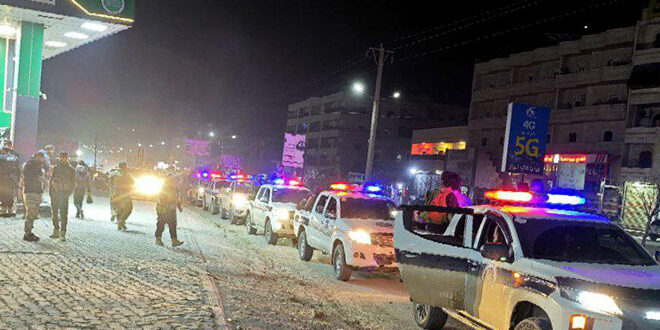 أرتال لقوات الأمن العام في مدينة إعزاز شمال حلب تستعد للتوجه إلى منطقة جبلة وريفها، ضمن التعزيزات التي دفعت بها وزارة الداخلية 2025-03-06