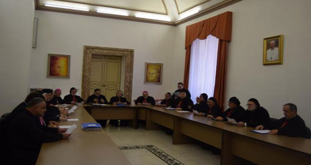 وعرض الأساقفة خلال مجمعهم السنوي الوضع الكنسي في كل من سورية في خضم الحرب الإرهابية المدمرة الدائرة فيها منذ أربعة أعوام والعراق بعد هجوم تنظيم “داعش” الإرهابي على مدينة الموصل وسهل نينوى في الصيف الماضي وإفراغهما بالكامل من المسيحيين وتهجيرهم القسري منددين بما جرى للمسيحيين في مدينة الموصل وسهل نينوى وباقتلاع أبرشية الموصل بكاملها من جذورها التاريخية.