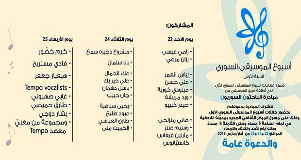 أسبوع الموسيقا السوري الأول مساء اليوم على مسرح دار الأسد باللاذقية