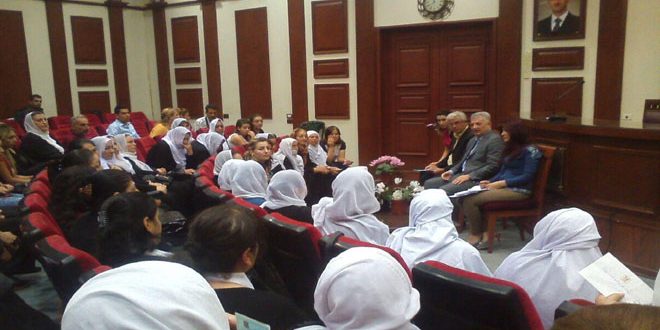 جاء ذلك خلال لقاء محافظ السويداء عامر ابراهيم العشي في مبنى المحافظة 48 من أمهات وزوجات وأخوات الشهداء اللواتي اتبعن دورات في فرع الاتحاد العام النسائي حيث اكد المحافظ متابعة جميع قضاياهم ومطالبهم المحقة والعمل على إيجاد صيغة مناسبة بالتعاون مع الاتحاد النسائي لتوزيع السلات الغذائية على أسر الشهداء بما يضمن حقوقهم كاملة.