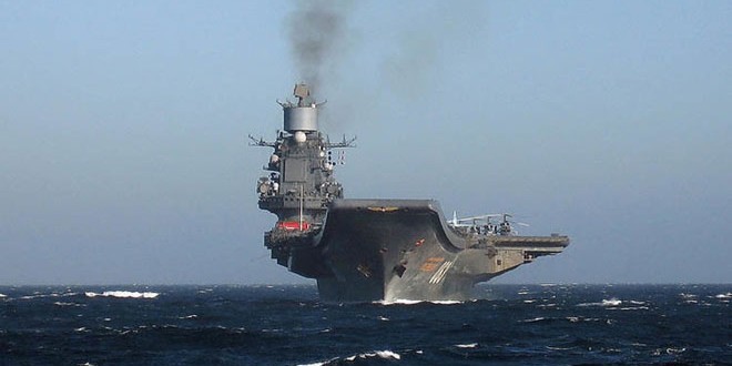 يذكر أن حاملة الطائرات التابعة لأسطول الشمال الروسي كانت وصلت إلى البحر المتوسط وانضمت إلى مجموعة سفن القوات البحرية الروسية في 15 كانون الثاني عام 2014 ثم غادرت البحر المتوسط في نهاية نيسان من العام نفسه لتعود إلى قاعدتها في بحر بارنتس حيث خضعت لأعمال الإصلاح والترميم.
