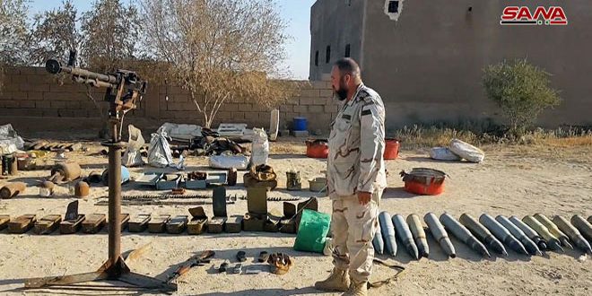 أسلحة وذخائر وأجهزة اتصال من مخلفات إرهابيي “داعش” بريف دير الزور