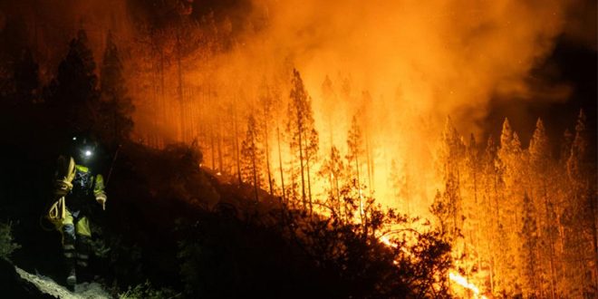 أجلت السلطات الإسبانية آلاف الأشخاص من منازلهم، جراء حرائق الغابات التي امتدت في جزيرة تنريفي السياحية التابعة لجزر الكناري.