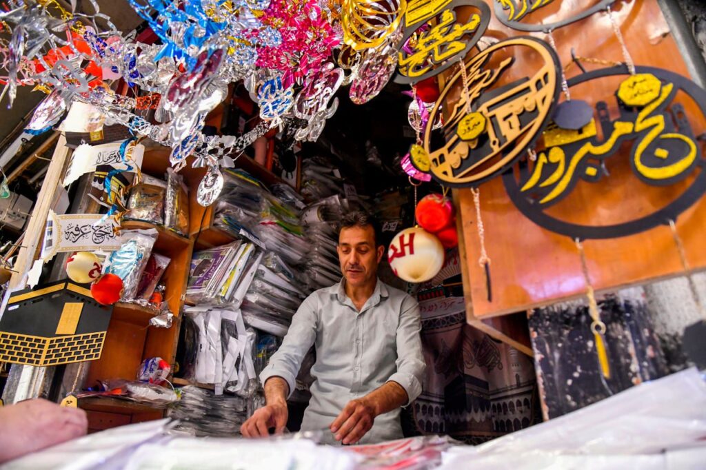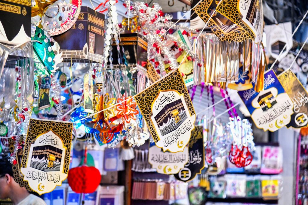 وخلال جولة لمراسلي /سانا/ في أسواق دمشق القديمة “المسكية والبزورية”، أوضح بائع الزينة عبد الوهاب المؤذن أن تطور الصناعة ودخول الكهرباء في صناعة الزينة أدخلا مواد جديدة للحفاوة بالحجاج، مثل الأضواء المتراقصة بعد أن كانت مقتصرة على الزينة الورقية، كما بات مجسم الكعبة جزءاً أساسياً مرغوباً من قبل الزبائن، إضافةً للوحات الخشبية والزجاجية والحبال الملونة، ورايات “لا إله إلا الله محمد رسول الله” و”حجاً مبروراً وسعياً مشكوراً”.