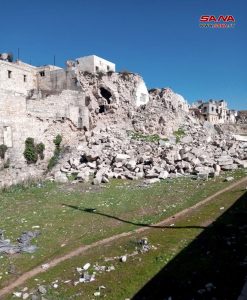 وبين مدير المدينة القديمة في مجلس مدينة حلب المهندس أحمد الشهابي في تصريح لمراسلة سانا أن حلب القديمة مساحتها 400 هكتار تتضمن 16 ألف عقار، حيث تعرضت أوابد قلعة حلب من أبراجها الدفاعية والمطحنة العثمانية وبعض أجزاء من السور العلوي للتهدم، إضافة إلى عدد من مآذن الجوامع الأثرية.