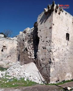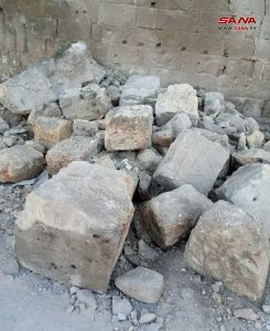 وأشار الشهابي إلى أن باب النصر وباب الحديد أصابهما هبوط في القوس الحجري وباب أنطاكيا وبرجه تعرض لتساقط بعض الأحجار، كما أن البرج الشمالي والجنوبي لباب أنطاكيا والبرج الأيوبي سقطت واجهاتها الحجرية.