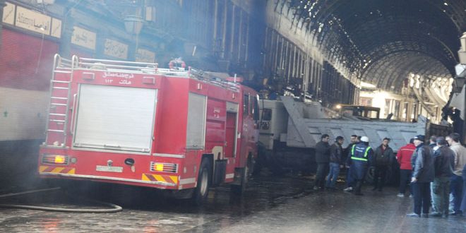 أضرار مادية جراء حريق في عدد من المحال التجارية بسوق الحميدية في دمشق