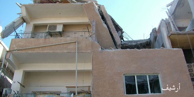 أضرار مادية في الممتلكات العامة جراء اطلاق المجموعات الإرهابية قذائف صاروخية على الحي الخدمي بمدينة البعث في القنيطرة