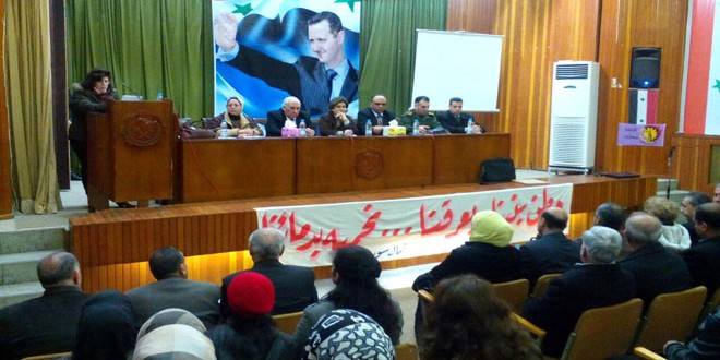من جهتها لفتت رئيسة المكتب الإداري لفرع الاتحاد النسائي زودة المحارب إلى الضرر الكبير الذي أصاب المرأة خلال الحرب الكونية التي تعرضت لها سورية داعية إلى إعادة تمكين المرأة وتأهيلها لتكون رديفا في البناء وتحصين الوطن.