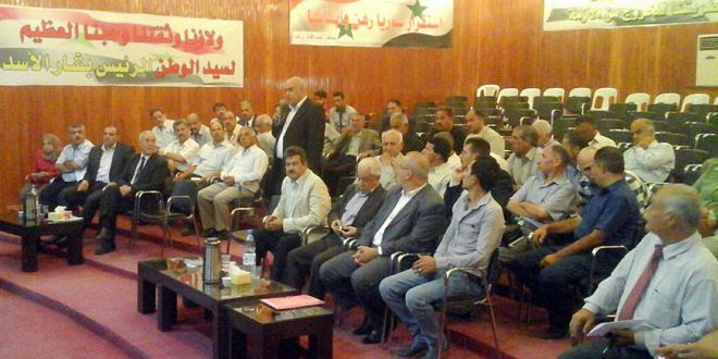 من جانبه أشار نائب رئيس المكتب التنفيذي المهندس عواد سويدان إلى انه تم تشكيل لجنة للمصالحة المحلية في درعا بهدف إعادة المغرر بهم إلى حضن الوطن داعيا لتشكيل لجنة فاعلة من أعضاء مجلس المحافظة للتواصل مع المواطنين ولجنة المصالحة المحلية بما يسهم في إعادة الأمن والاستقرار لكل أرجاء المحافظة.