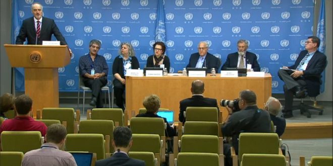 وعندما حاولت إحدى الصحفيات استفزاز أعضاء الوفد بالسؤال عما يسمى “براميل متفجرة” رد الوفد بالقول إن “ما يسمى البراميل المتفجرة هو مصطلح أمريكي للترويج الإعلامي والإساءة إلى القيادة السورية في الإعلام إلا أن هذه القيادة تدافع عن شعبها وسيادتها ووحدة البلاد ضد الإرهاب”.