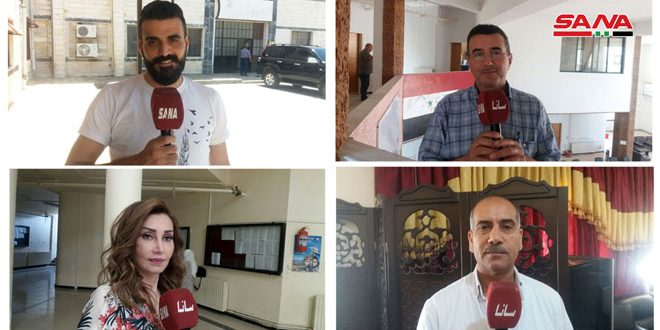 سلمان ركاب مهندس من بلدة حضر أكد أن المشاركة تأكيد على وقوف السوريين مع وطنهم ودستورهم فيما أوضح الإعلامي خالد الخالد مدير مكتبي صحيفتي الوطن والثورة أن السوريين بوعيهم سيثبتون أن بلدهم ستبقى حرة عصية على الأعداء.