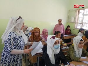 وفي السويداء أشار رئيس دائرة الامتحانات في مديرية التربية باسل مرشد إلى أن 9017 تلميذاً وتلميذة منهم 842 تلميذاً وتلميذة تقديم حر تقدموا إلى الامتحانات وسط أجواء مريحة وتطبيق كامل للإجراءات الاحترازية للتصدي لفيروس كورونا في 78 مركزاً امتحانياً.