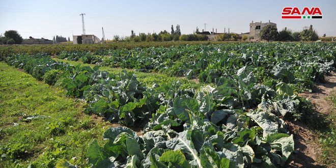 وأضاف حمدان إن الإنتاج المقدر من الخضار الشتوية البعلية المزروعة يبلغ 3748 طناً على مساحة 371 هكتاراً وبنسبة تنفيذ بلغت 100 بالمئة منها 1928 طناً من الفول الأخضر ونحو 700 طن من الملفوف و300 طن من البصل الأخضر وتوزع باقي الإنتاج وبكميات مختلفة على الثوم والبازيلاء والزهرة والسلق والسبانخ.
