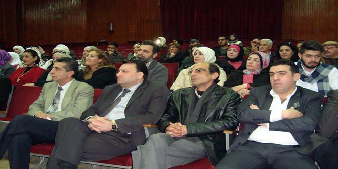 وألقى القاص حلاق مجموعة من الخواطر الشعرية التي أراد من خلالها أن يصور الحالة الإنسانية التي يعيشها المجتمع السوري في معاناته نتيجة الحرب الإرهابية التي تشن على بلاده فقال في خاطرة بعنوان “عند ذات الرصيف”..