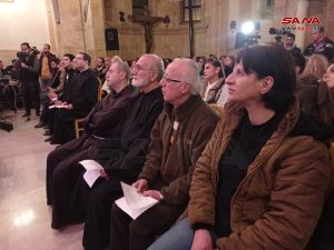وقال الأب أنطوان طحان خوري “رعية كنيسة الصليب المقدس للأرمن الكاثوليك بحلب”: إن الأمسية هي للصلاة على أرواح من فقدوا بالزلزال والمصابين، مضيفاً: إن سورية اليوم ترتفع وتتعالى وتتسامى وكذلك شعبها، ورغم الألم نصلى حتى يبعد الله عنا الأزمات ويمنحنا القوة للتغلب على الصعوبات.