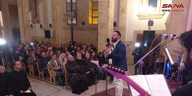 وبين ريمون يزبك في تصريح لمراسل سانا أن الأمسية تقام على نية ضحايا الزلزال الذي حل بكارثته على المحافظات، لافتاً إلى أن التراتيل الدينية التي يقدمها هي كلمات لصلوات اعتاد الأهالي ترديدها في الكنائس.
