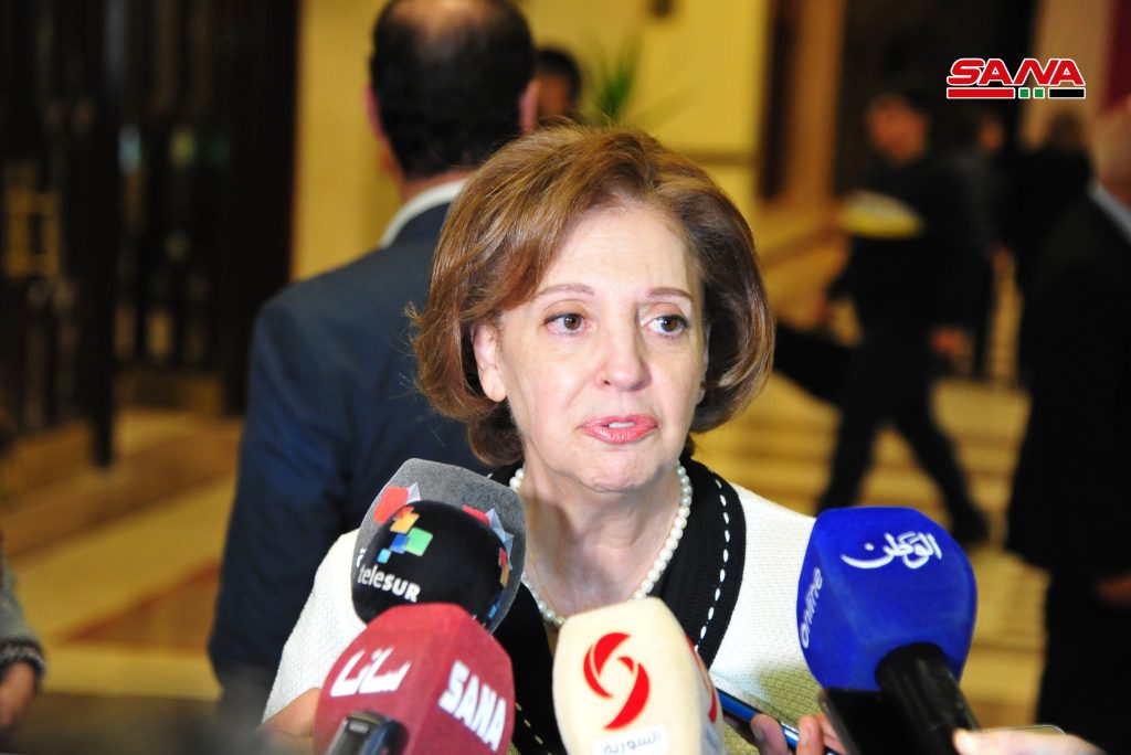 ورحبت وزيرة الثقافة الدكتورة لبانة مشوح في كلمة بأعضاء الوفد الروسي المشاركين في الاجتماع الدوري المشترك للهيئتين التنسيقيتين السورية والروسية حول عودة اللاجئين والمهجرين المنعقد في دمشق لافتة إلى مبادرة الشعب الروسي الصديق الذي وقف إلى جانب سورية في الحرب عليها وهو اليوم يقف إلى جانبها في تجاوز آثار الحرب للمضي قدماً لبنائها كما نحب وتستحق وكما نحن أهل لها.