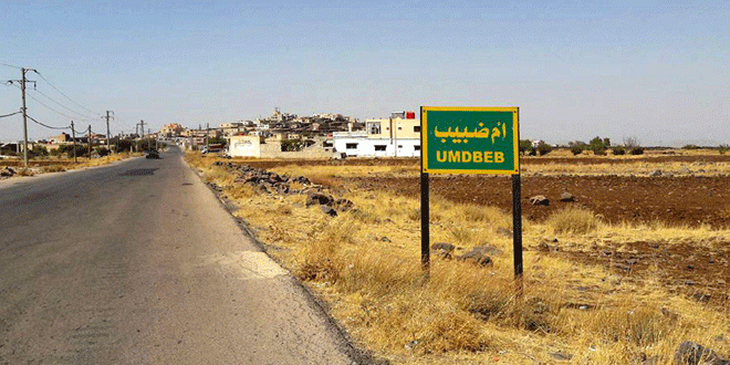 يشار الى أن “أم ضبيب” تقع الى الشرق من مدينة شهبا بنحو 11 كيلومترا ويحدها من الشرق قرية تيما ومن الجنوب طربا ومن الغرب قرية نمرة شهبا ومن الشمال قريتا شقا والجنينة.