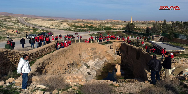 وجال المشاركون البالغ عددهم نحو 160 متطوعا من معظم المحافظات السورية على أبرز معالم المدينة الأثرية وواحة النخيل التاريخية وكهف نبع أفقا الذي كانت مياهه سببا في تجمع الإنسان ووجود الحياة في هذه المنطقة.