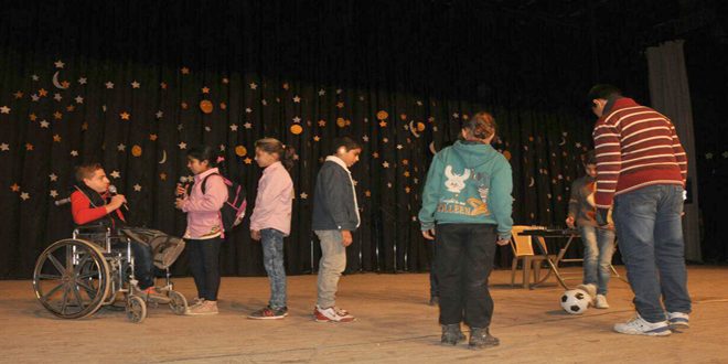 وقدم كورال أطفال من ذوي الإعاقة في الجمعية السورية للتنمية الاجتماعية غناء جماعيا فيما قدمت مجموعة أخرى من الأطفال مسرحية وسرد قصة نجاح جسدت إحدى حالات الإعاقة التي تمكنت بإرادتها الصلبة وإصرارها من تحدي ظروفها واثبات ذاتها وترك بصمة لها في ميدان الحياة والعمل والإنتاج كما قدمت مجموعة من الأطفال أغاني ومسرحيات عرضوا فيها مواهبهم الإبداعية في مجال الغناء والعزف الموسيقي.