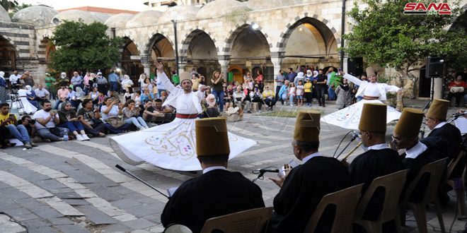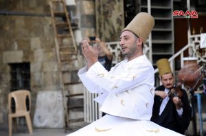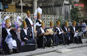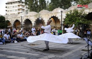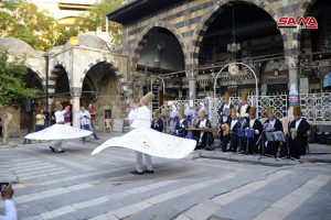 وتضمنت الأمسية موشحات أندلسية وصوفية ودينية أداها كورال الفرقة بمصاحبة الفرقة الموسيقية وبمشاركة راقصي المولوية “الدراويش” الذين ارتدوا أثواب بيضاء نقشت عليها رموز روحانية صممها الفنان التشكيلي بديع جحجاح.