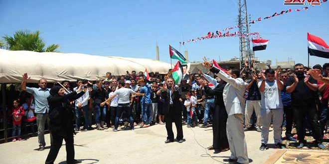 أهالي الغارية الغربية في درعا يحتفلون بالنصر وعودة الحياة الآمنة إلى بلدتهم 2018-07-11 تصوير: مهند أسعد