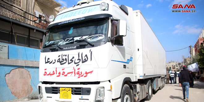 تحت عنوان سورية أسرة واحدة يستمر أهالي درعا بجمع التبرعات العينية والمادية لمساندة المتضررين من الزلزال في عدد من المحافظات السورية.