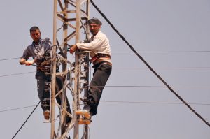 كما اطلع المحافظ على أعمال تركيب مركز تحويل كهرباء العقربية حيث أوضح المهندس مصلح الحسن مدير فرع شركة الكهرباء بحمص أنه خلال 3 أشهر سيتم حل مشكلة انقطاع الكهرباء بالعقربية من خلال إيجاد الحل النهائي لخط التوتر المغذي للقرية والذي يصل حاليا مع تفريعاته إلى 70 كم ويزود المنطقة بالكهرباء من خلال محطة تحويل الذهبية وتصل الحمولات عليه حتى 8 ميغا واط بالذروة ما يؤدي إلى انقطاعات متكررة مبينا أن الحل سيتم من خلال إنشاء ربط بين خطي التوتر في قريتي النهرية والفتايا تتم تغذيته من محطة تحويل القصير حيث انتهت الدراسة حاليا للمشروع وسيتم الإعلان عن تنفيذه لحل مشكلة انقطاع الكهرباء بالقرية.