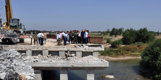 واطلع المحافظ بعد ذلك يرافقه عدد من مديري قطاعات الخدمات الفنية والصحة والهاتف والكهرباء والمياه على واقع العمل في موقع جسر تل النبي مندو الذي يقوم فرع المؤسسة العامة للمواصلات الطرقية بإعادة تأهيله بعدما تعرض للتخريب نتيجة الاعتداءات الإرهابية بكلفة 66 مليون ليرة .
