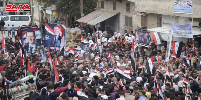 وعبر عدد من المشاركين في الوقفة لمراسل سانا عن اعتزازهم وفخرهم بالجيش العربي السوري والبطولات التي يسطرها في التصدي لأي عدوان خارجي مؤكدين وقوفهم جنباً إلى جنب مع كل جندي يرابط في خندقه للذود عن تراب الوطن.