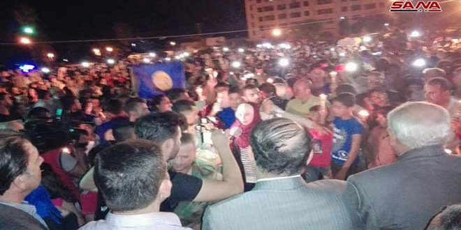 وشددت الكلمات على أن الاعتداءات الإرهابية مهما بلغ حجمها فلن تنال من وحدة الشعب السوري منوهة بصمود أهلنا في السويداء في وجه الإرهاب وعزمهم على مواجهته بكل الوسائل.