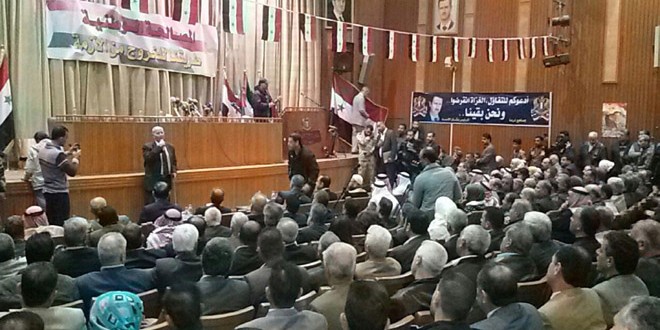ولفت المطرود إلى أن الحشد الكبير الذي غص به مدرج المركز الثقافي من كل الفئات الاجتماعية والمناطق والقرى هو رسالة واضحة بأن درعا تقول “إنني ما زلت السيف الذي يدافع عن أرض الوطن وسأبقى درعه مع كل أبناء المحافظات لنحمي بلدنا سورية” مبينا أنها “عنوان لبداية مرحلة جديدة سنفرح بها قريبا في كل درعا”.