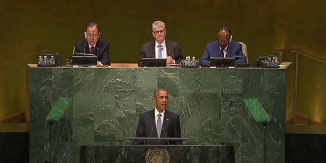 وقال أوباما في كلمته أمام الجمعية العامة للامم المتحدة في دورتها السبعين.. إننا نرى مجموعات إرهابية تقطع رؤوس المعتقلين في سورية وهذا لا يتعلق بالأمن في دولة واحدة بل بالبشرية برمتها متجاهلا أن تمدد تنظيم “داعش” الإرهابي في سورية والعراق هو نتيجة سياسات إدارته الداعمة للإرهاب في المنطقة.