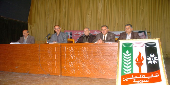 طالب أعضاء شعبة نقابة المعلمين بريف محافظة السويداء خلال مؤتمرهم السنوي اليوم إجراء مسابقات لتثبيت المعلمين الوكلاء وتعيين الخريجين الجامعيين وإعادة النظر ببعض المسائل في المناهج الدراسية ومتابعة عمل الأطباء والمشافي الخاصة المتعاقدة مع شركة التأمين الصحي للالتزام بشروط التعاقد بما يخدم المعلمين.