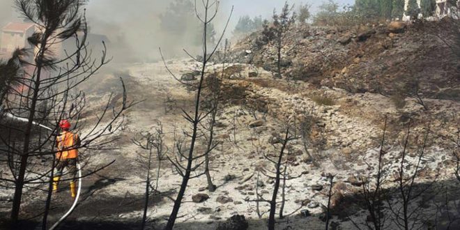 أخمد كوادر اطفاء حمص اليوم ثلاثة حرائق نشبت بأعشاب وأشجار حراجية بريف حمص الغربي.
