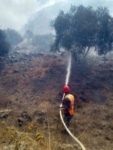 أخمد فوج الإطفاء بحمص وعناصر الدفاع المدني اليوم حريقاً كبيراً بقرية حالات في منطقة تلكلخ وحريقاً آخر بقرية عناز بريف حمص الغربي.