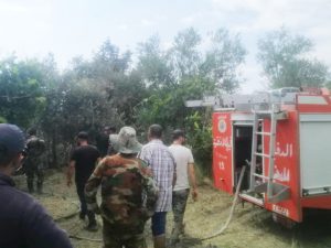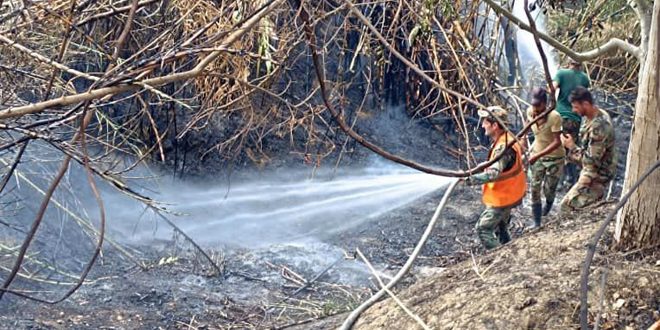 أخمد عناصر الإطفاء اليوم في اللاذقية حريقاً نشب في مساحات من أراض زراعية وحراجية في محيط قرية القلورية، بريف منطقة القرداحة.