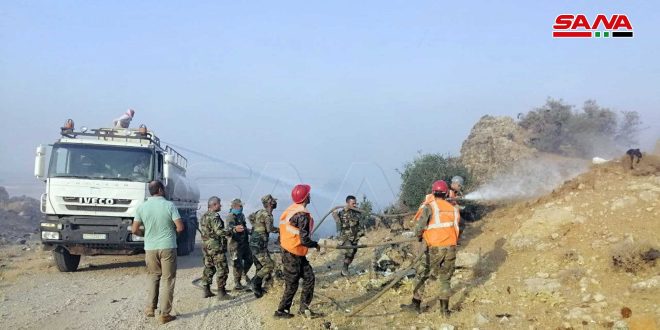 وذكر العقيد ثائر الحسن قائد فوج إطفاء حماة بتصريح لمراسل سانا أنه تمت السيطرة على النيران وإخمادها بعد مضي بضع ساعات بجهود مضنية بذلتها طواقم الإطفاء رغم الرياح الشديدة ووعورة تضاريس المنطقة وتعذر وصول الآليات لمواقع النيران.