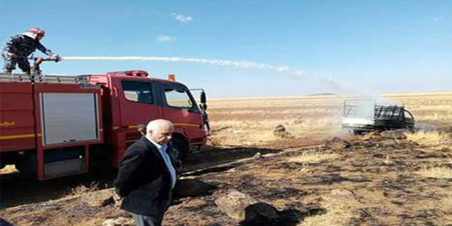 وذكر آمر زمرة الإطفاء أنس الطويل في تصريح لمراسل سانا أن الحريق الذي اندلع في سيارة “بيك اب” بسبب ماس كهربائي على طريق زراعي قرب قرية بارك امتد إلى مساحة من أراض مجاورة تنتشر فيها أعشاب يابسة وبقايا مزروعات حقلية وتم إخماده قبل أن يطال أشجار الزيتون المزروعة بالمنطقة.