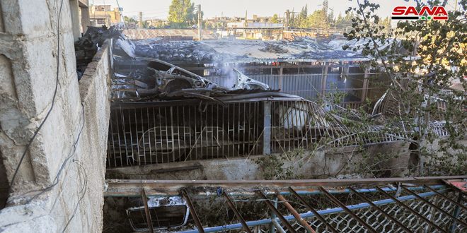 إخماد حريق بمستودع لقطع سيارات مستعملة بمنطقة بورسعيد الصناعية بدمشق
