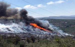 أخمد عناصر فوج الإطفاء في طرطوس بالتعاون مع عناصر الإطفاء بدائرة الحراج بمديرية زراعة طرطوس حريقا شب ظهر اليوم في مكب القمامة بمنطقة القشعات في بلدة مشتى الحلو بريف طرطوس.
