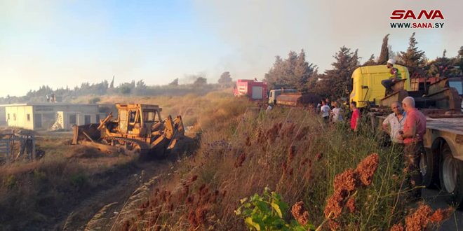 أخمدت فرق الإطفاء بالتعاون مع الأهالي والطيران حريقاً ضخماً، اندلع اليوم في الأراضي الزراعية بمحيط قرى المرانة وأوتان ورباح والمتعارض والمحفورة، بمنطقة شين في ريف حمص الغربي.